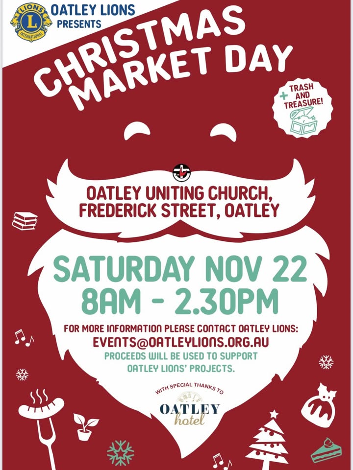 Experience the festive cheer at the Oatley Lions Christmas Market Day happening on the 22nd of November from 8am to 2:30pm at the Oatley Uniting Church, Frederick Street, Oatley. Join in on the Christmas spirit while supporting local causes with all proceeds from the event going towards good initiatives.