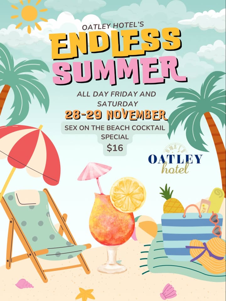 Keep the summer vibes high this week at Oatley Hotel with our exciting Endless Summer event. Join us for a special cocktail special running both Friday and Saturday from open till close (RSA Laws apply).