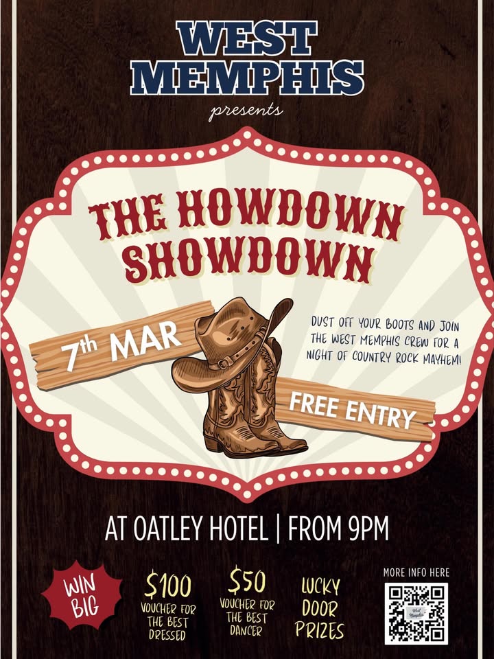 Don’t miss out on West Memphis live at Oatley Hotel on 7th March. Book your table today and join us for a night of great music, dancing, and country vibes.